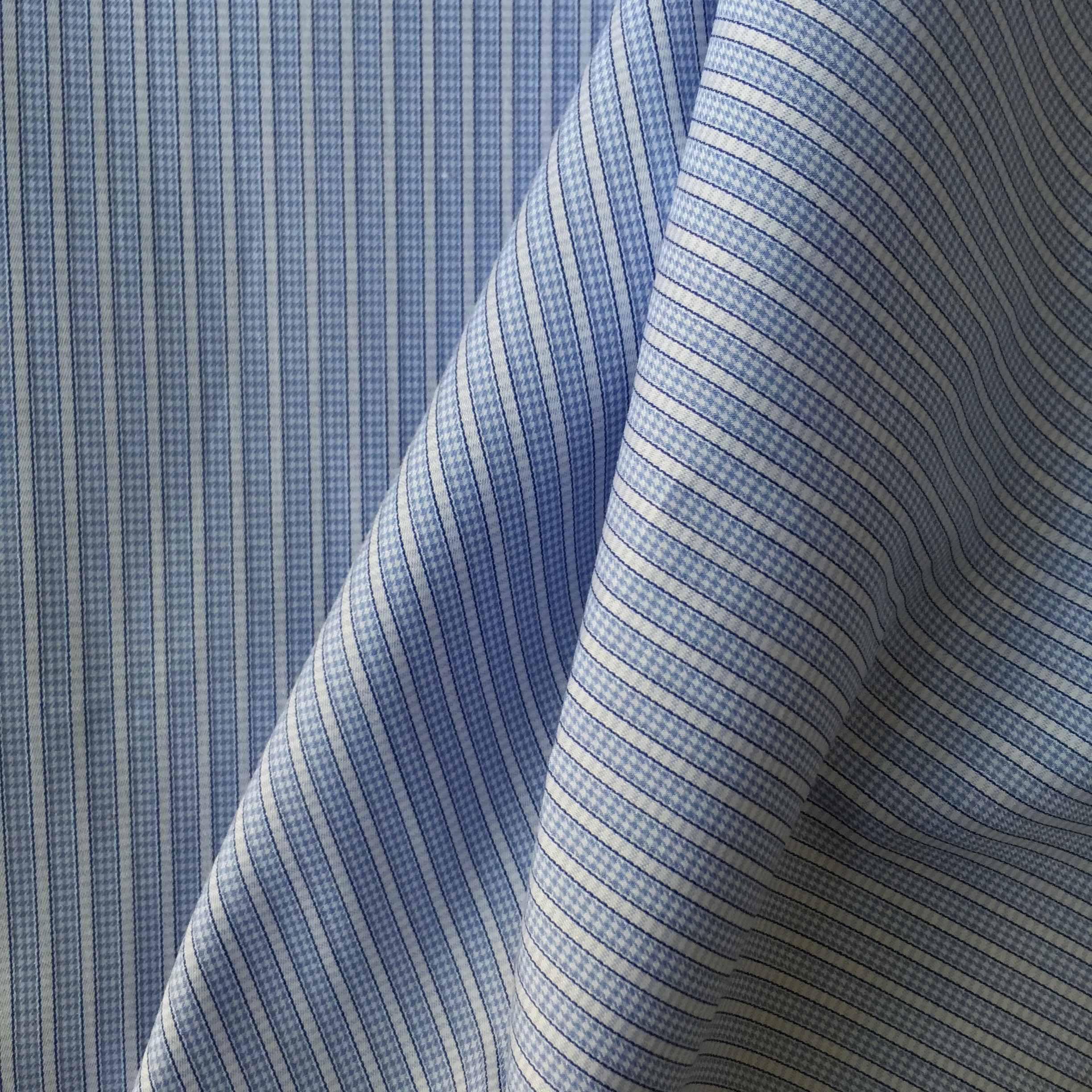 We went with a crisp cotton shirting, airy and cool for the summer. For a men’s dress shirt it might have come across a little conservative, but this project transformed it into something fresh and smart – a good example of how a fabric can change with its application.